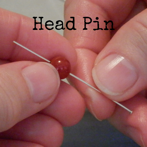 This pin-shaped wire has either a head or eye on one end. This keeps the materials from falling off. The purpose of the headpin is to create a stopping point. The goal for an eye pin is to create a link that allows the option of continuing the design to other dangles.