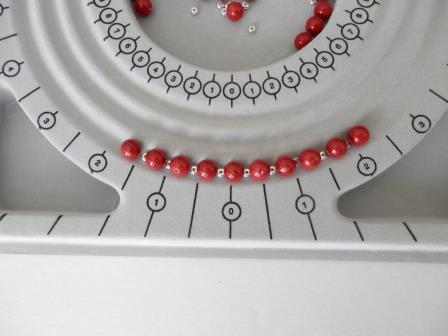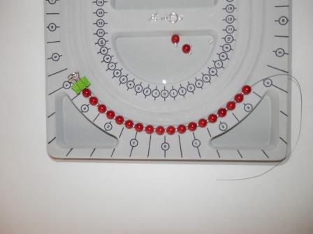 Begin laying out the pattern on your work surface. You want to get a feel for how it will look. The pattern for this specific project is the 'repeat pattern' we discussed in beading designs. We are using a beading board to lay out the pattern.