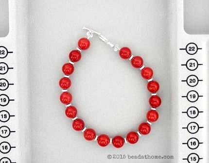 For our beaded bracelet tutorial, we used 8mm beads accented with silver-plated rondelles or spacer beads.