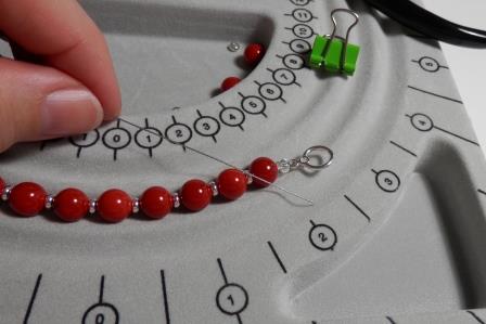 If you need to make any adjustments, just un-string the open end you are working on and either add or remove any beads as necessary. Then repeat the step again for attaching the clasp.