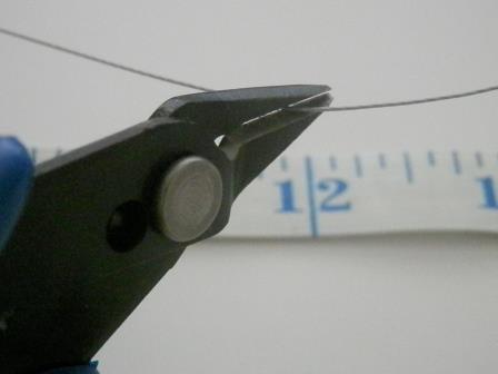 Measure and cut flexible beading wire using a wire cutter. Allow an additional 5 inches to your finished length. A 12-inch length is sufficient to get the job done for most single strand designs with any wrist size. Regardless, always be sure to allow a minimum of 5 - 6 inches of extra soft, flexible beading wire.